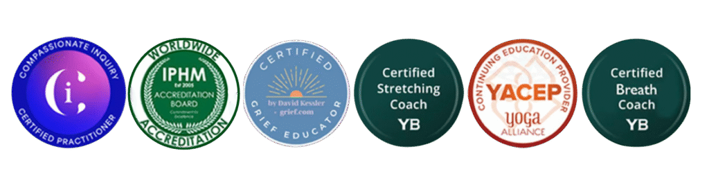 Therapeutic Sessions in Compassionate Inquiry, Breathwork, Meditation, Deep Stretching & Somatic Release, Grief Loss & Transition and Energy Medicine